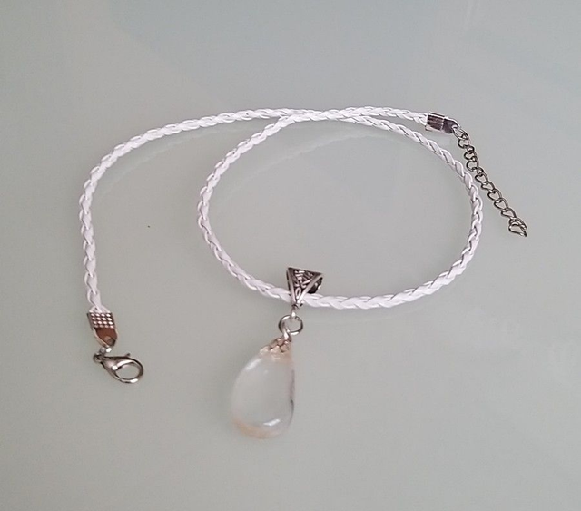 Fonott műbőr nyakláncra került a Hegyikristály. Medált egy különleges és szépséges medáltartóval láttam el, amivel egy kellemes hatást értem el. Delfin kapoccsal záródik. Átlátszóan gyönyörű és elegáns.