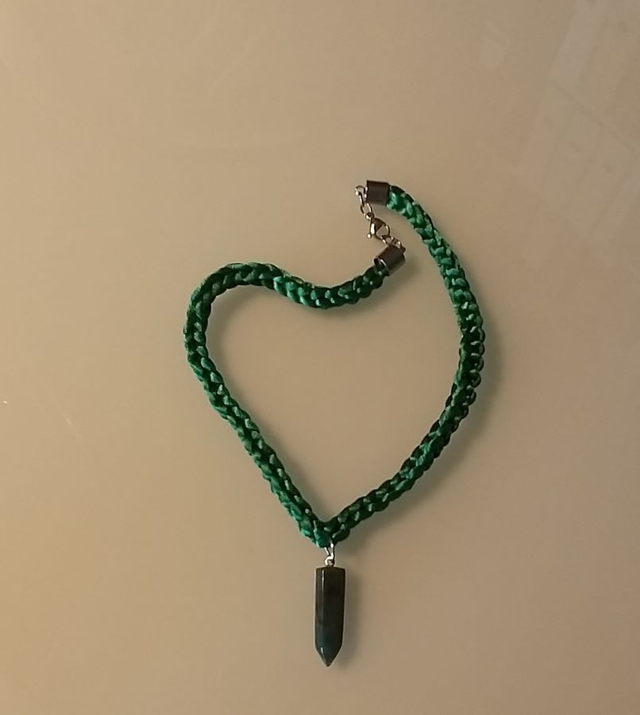 Szatén zsinórral horgolt nyaklánc Indiai - Achát csúcs medállal. Különleges forma és szín világ. Szépsége egyedi!