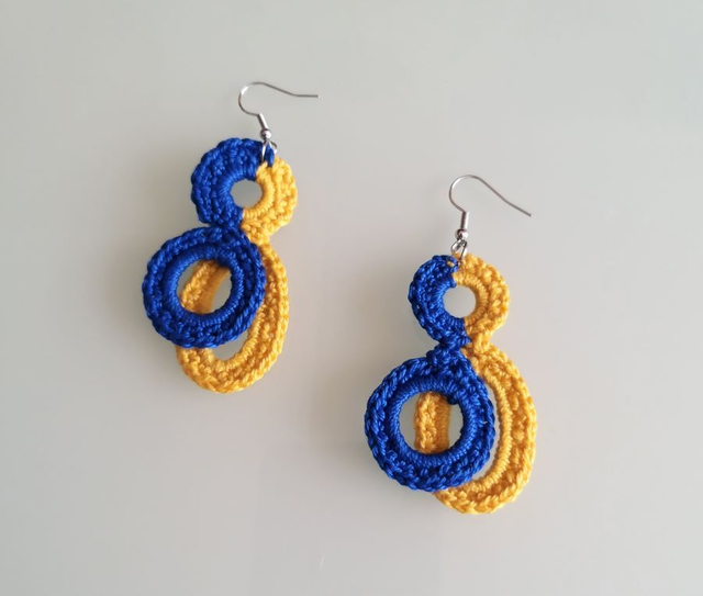 Kék és sárga horgolt fülbevaló