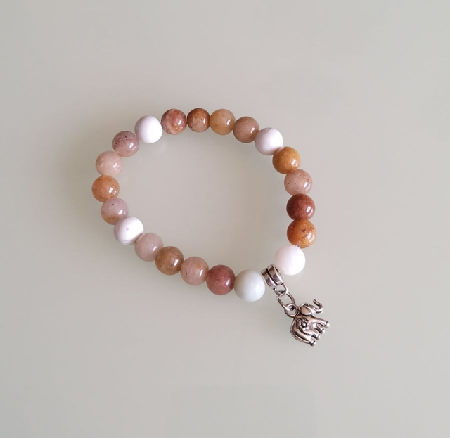 Tigris és Howlit ásvány karkötő., szerencse elefánttal. 16 cm .körbe